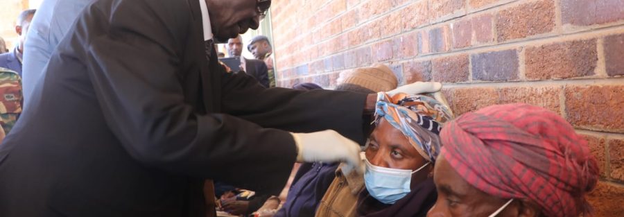 The Deputy Minister of Defence, Honourable Brigadier General(Retired) Levi Mayihlome(MP), inspecting some beneficiaries of the eye cataract operations during a medical outreach by the Zimbabwe Defence Forces at Maphisa, Matabeleland South Province on 06 August 2025.